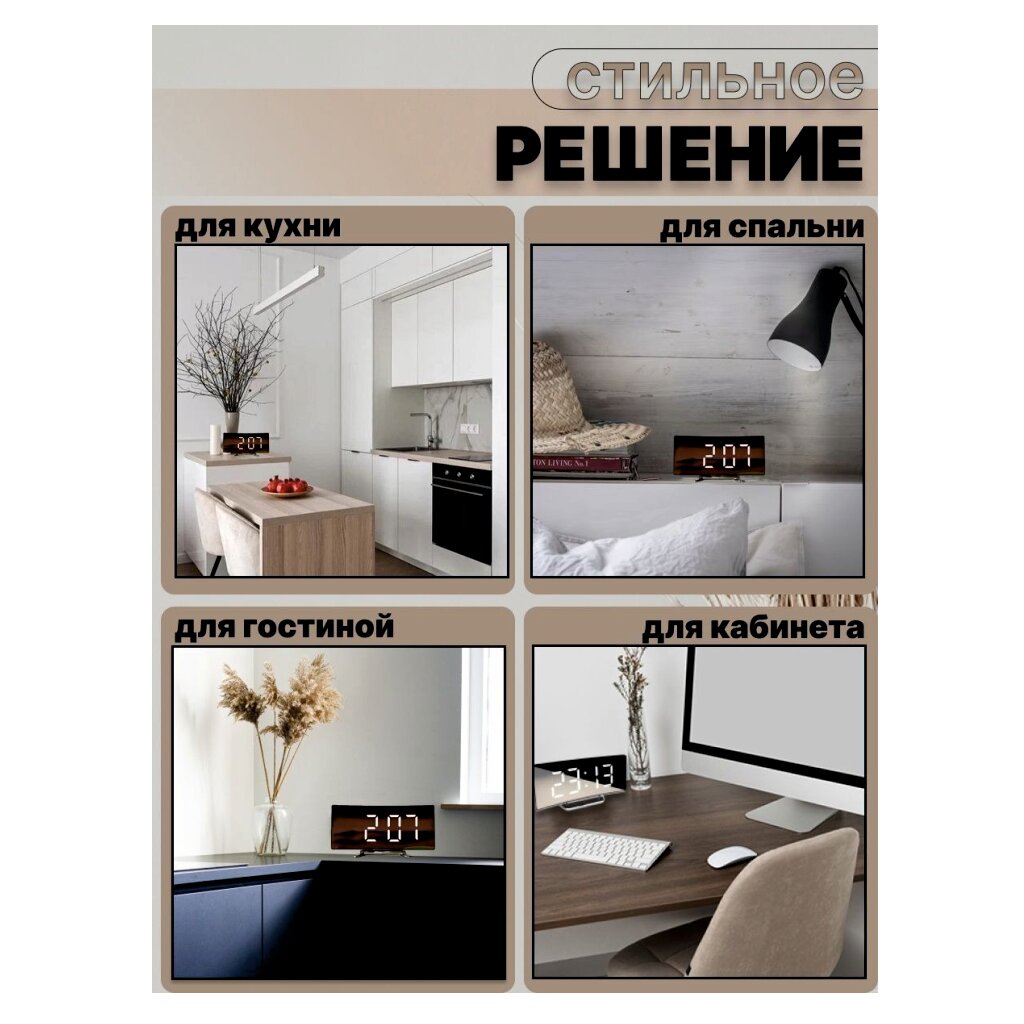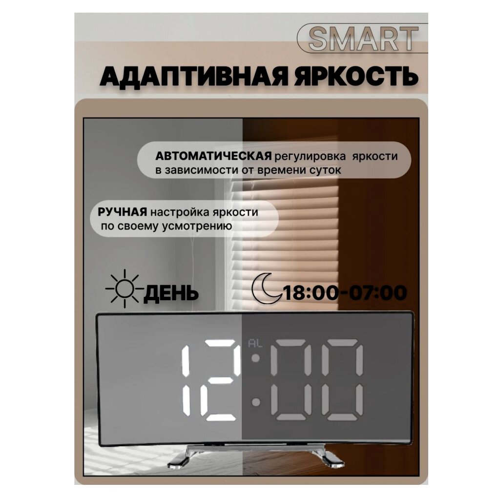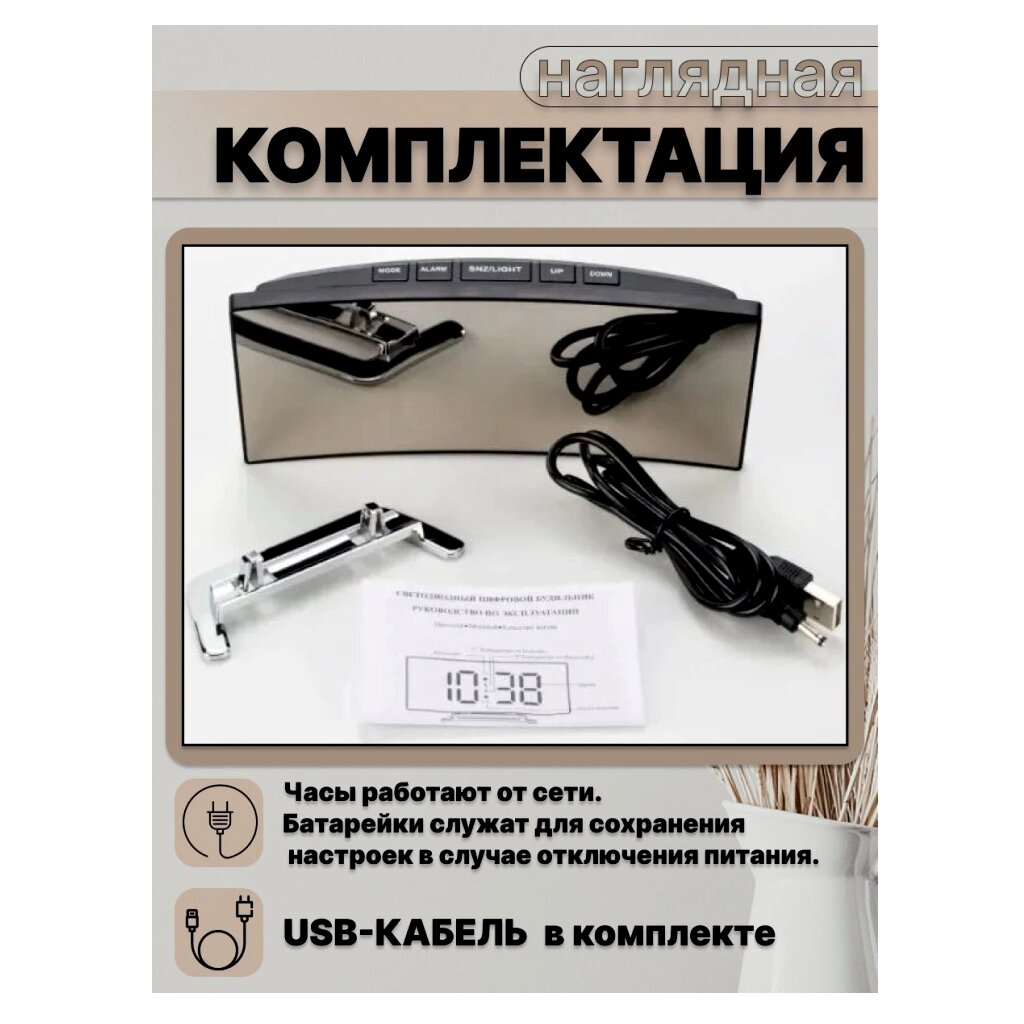 Часы электронные будильник с зеркальным табло / Цифровые часы настольные белые цифры / будильник / батарейки в комплекте интересное:
