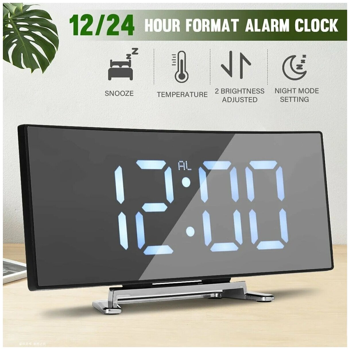 Купить Настольные зеркальные электронные часы с будильник, с датчиком температуры с подсветкой