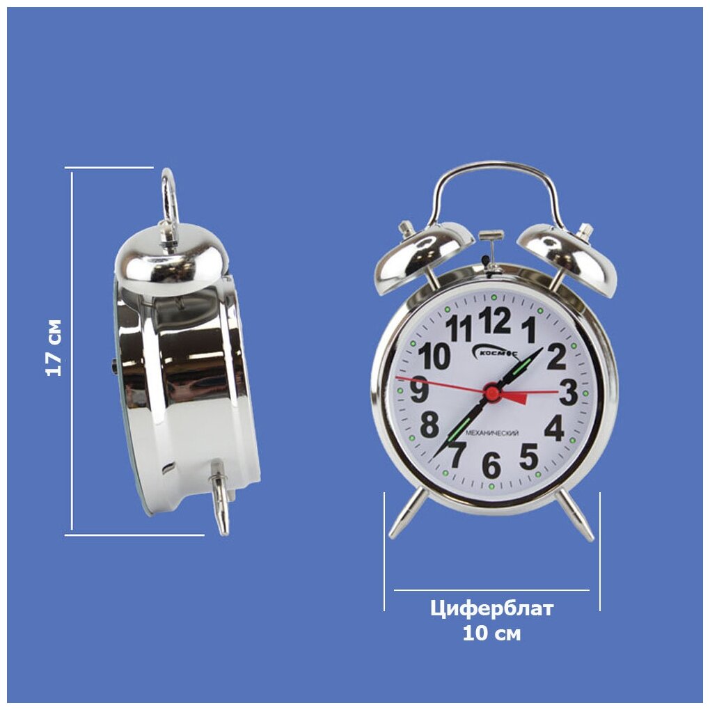Купить Будильник механический К817 / металлический / диаметр циферблата 10 см / Очень громкий! / серебро