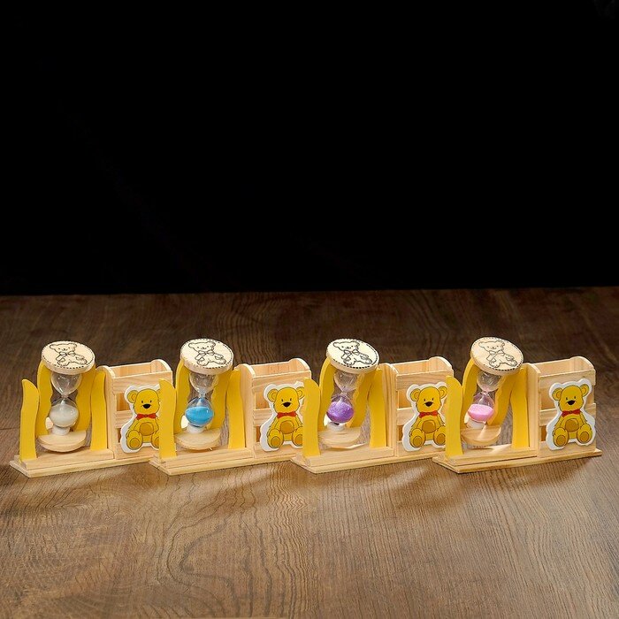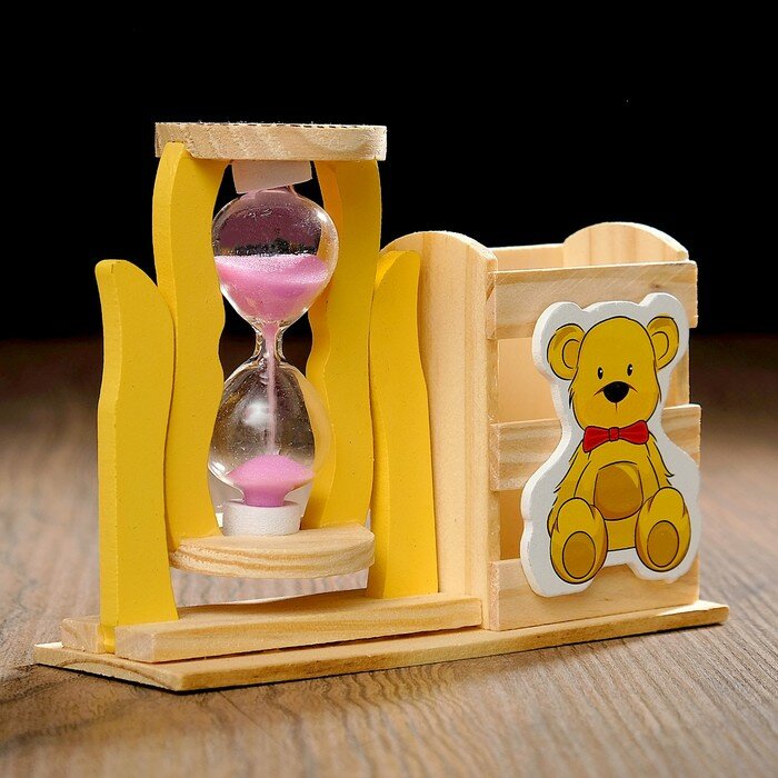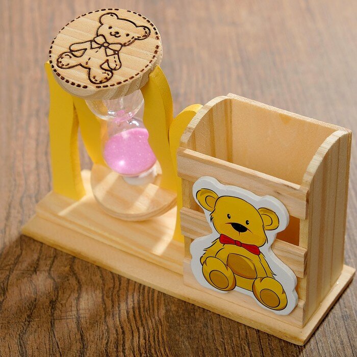 Купить Песочные часы "Медвежонок", сувенирные, с карандашницей, 13.5 х 13.5 х 10 см, микс
