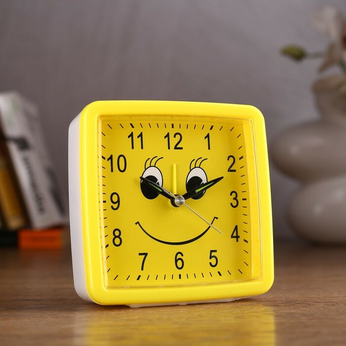 Купить Будильник "Смайл", дискретный ход, d-9 см, 11 х 11 см, циферблат микс