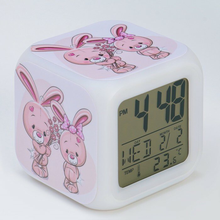 Купить Часы электронные настольные "Зайка", подсветка, будильник, термометр, календарь, 8 х 8 см (1шт.)