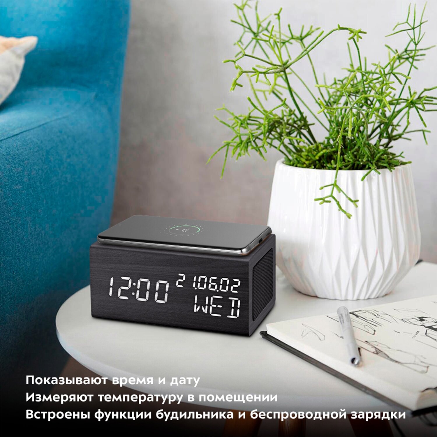 Часы настольные электронные с проекцией: будильник, термометр, календарь, 19.6 х 6.5 см