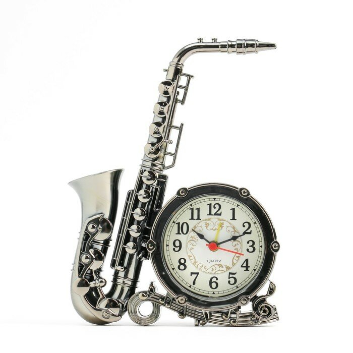 Будильник "Саксофон", дискретный ход,18,5 x15 x 3,6 см, АА, серебристый интересное: