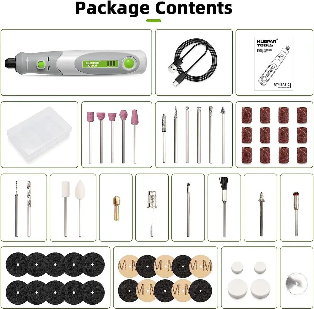 Купить Гравер аккумуляторный для полировки, шлифовки, гравировки Huepar Tools, 4V, 3 скорости + набор из 58 насадок