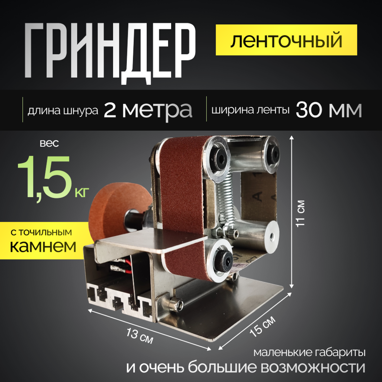 Купить Мини-гриндер ленточный с точильным камнем