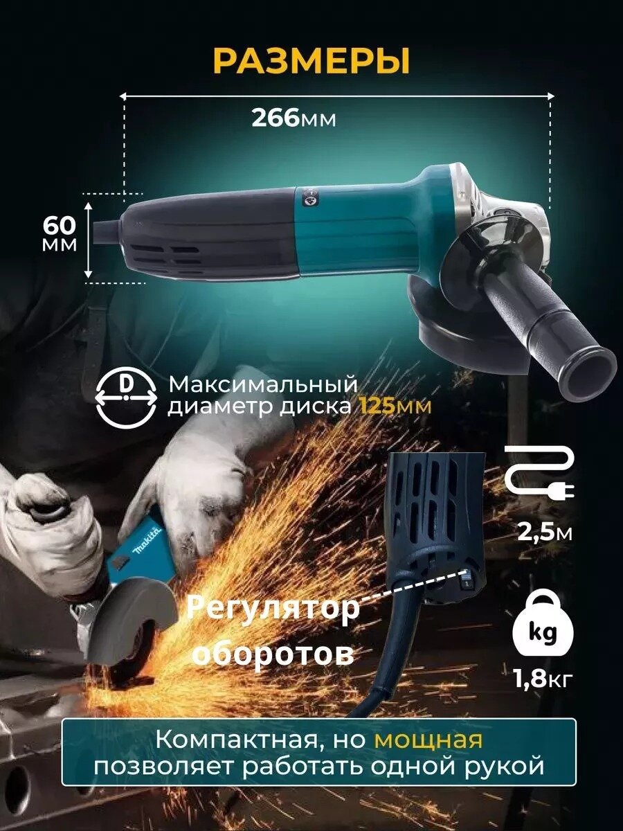 GA5030 народная болгарка с регулятором оборотов 300-13000 об/мин. 720 Вт. 125 мм интересное: