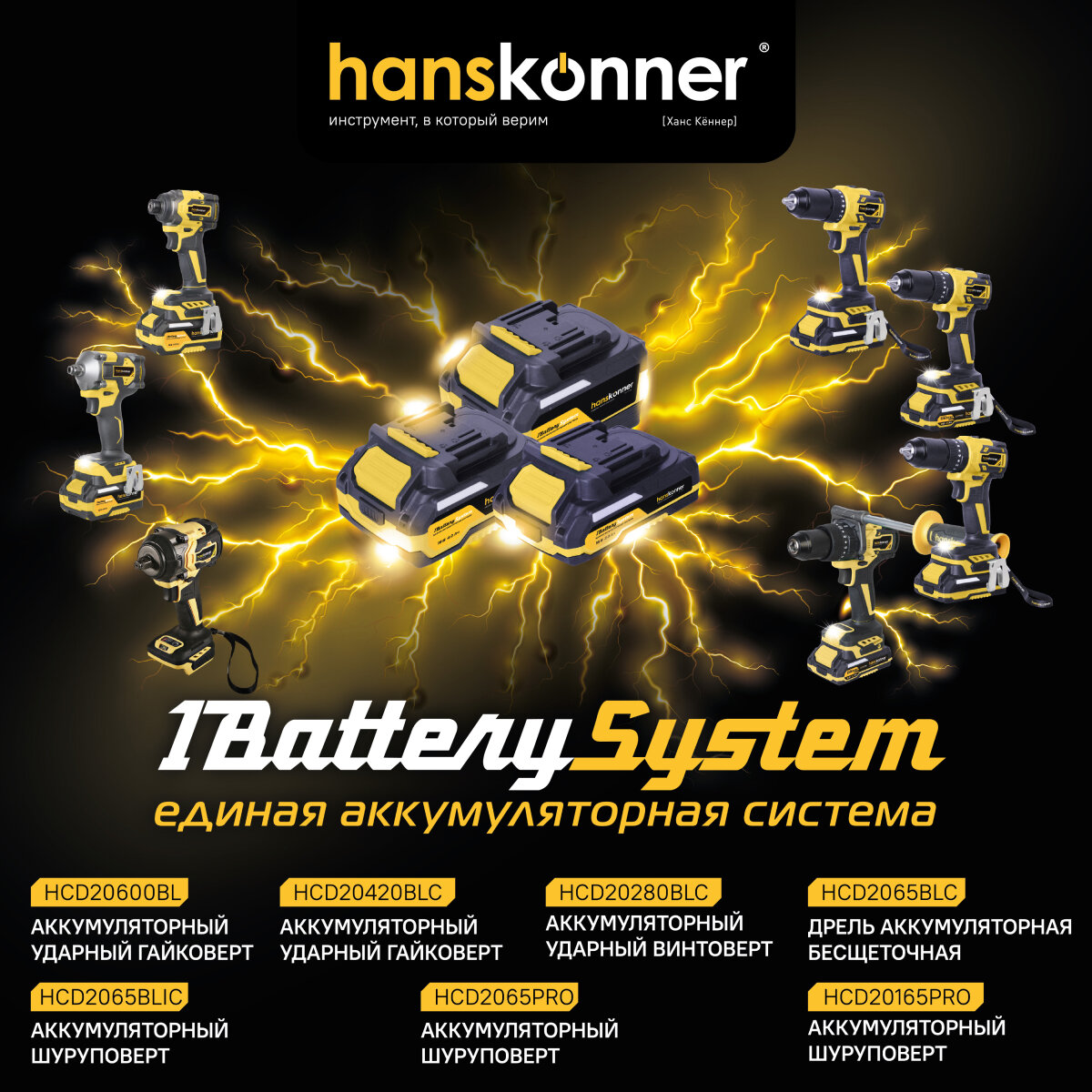 | Аккумуляторная система | Hanskonner Unibattery |