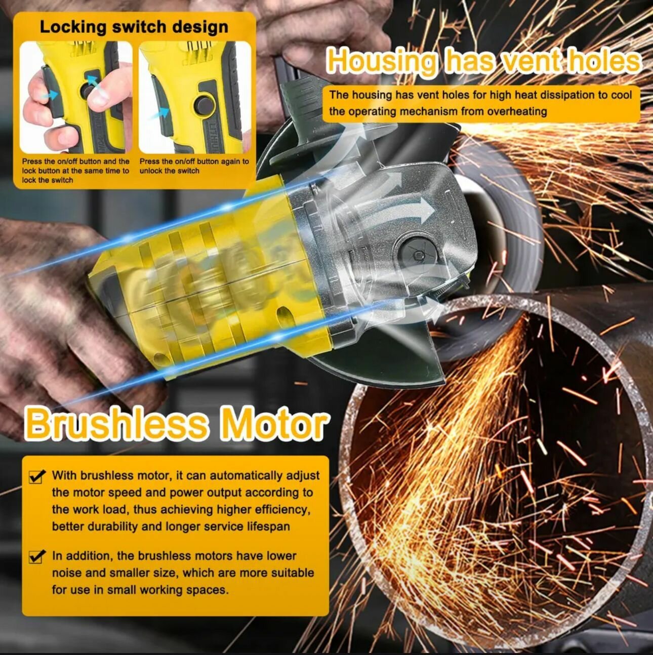 Болгарка аккумуляторная с 2 АКБ, угловаяя шлифовальная машина , 19500 об/мин, 21V, бесщеточный двигатель интересное: