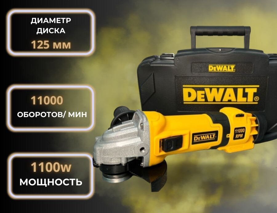 Шлифовальная машина / УШМ / Болгарка 125/1100W (1100 Вт, 125 мм), с регулировкой оборотов, сетевая, в кейсе интересное: