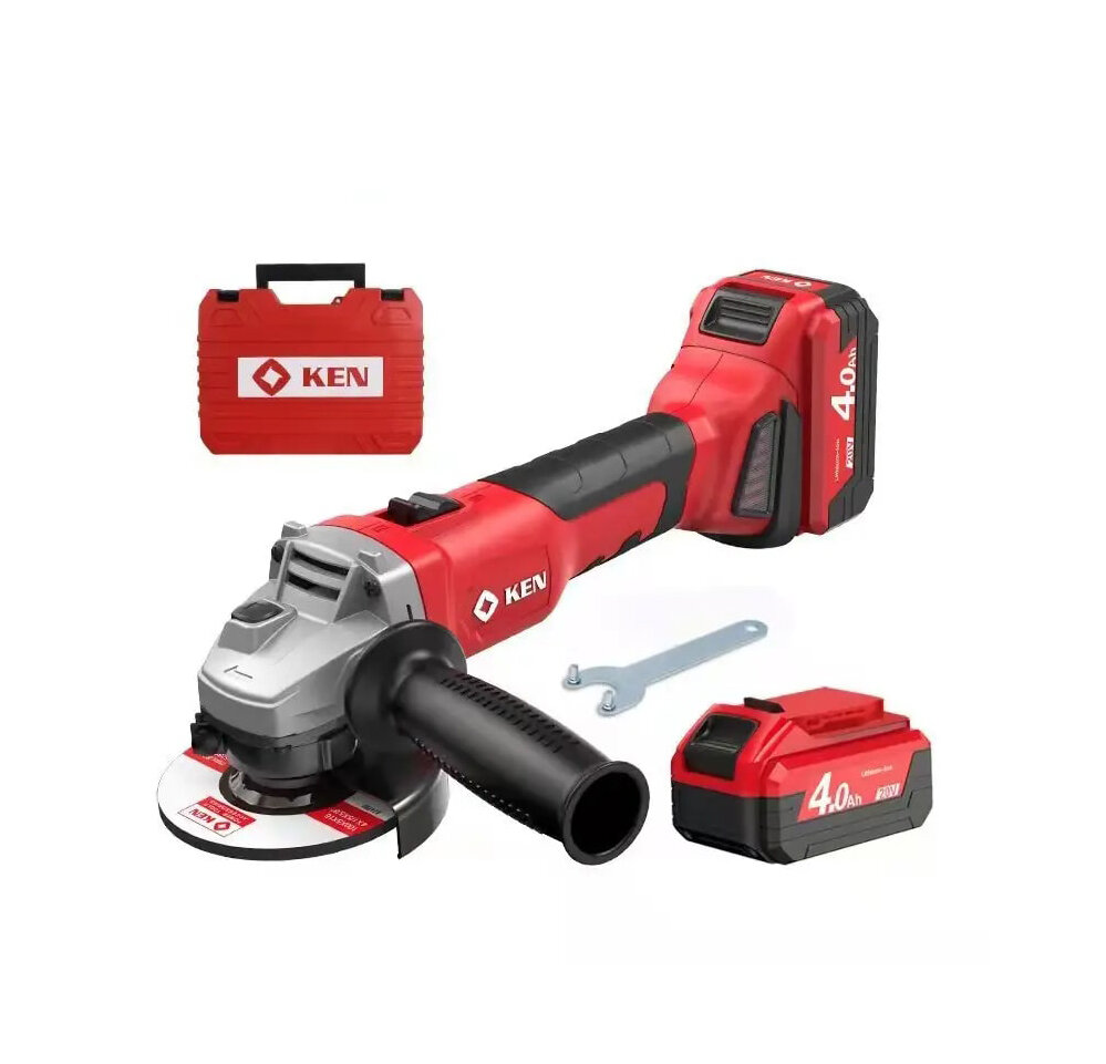 Аккумуляторная болгарка УШМ Ken BL9120-40S 20В, диск 125 мм, 8500 об/мин, в кейсе (АКБ 2 шт. 4.0 А/ч)