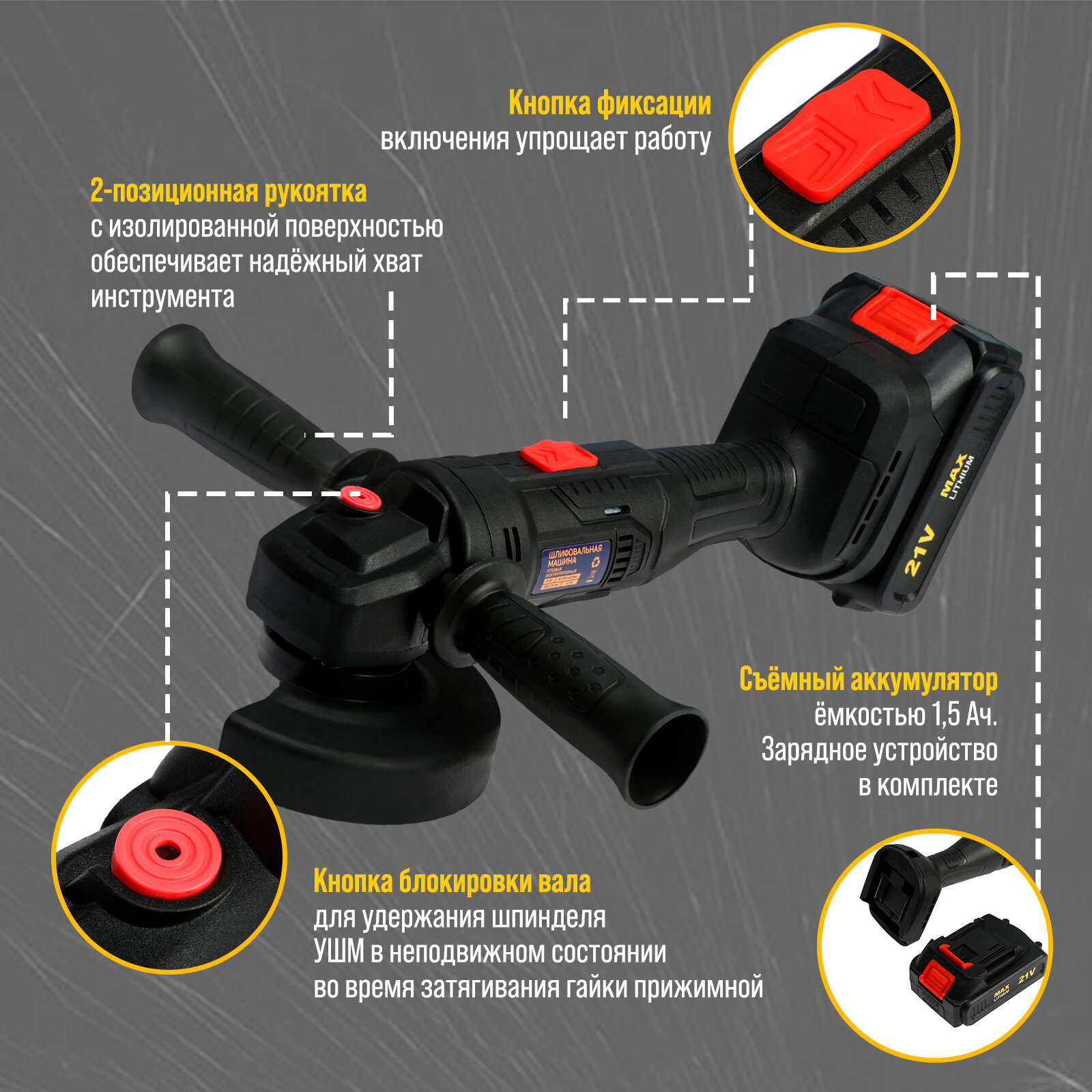 Аккумуляторная УШМ тундра, 21 В, 1.5 Ач, 100 х 16 мм, М10, 10 000 об/мин интересное: