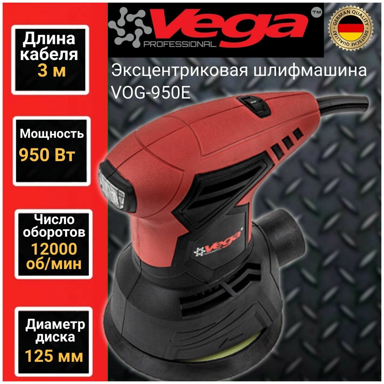 Эксцентриковая шлифмашина Vega Professional VOG 950E, 125мм, 950Вт, 12000об/мин интересное: