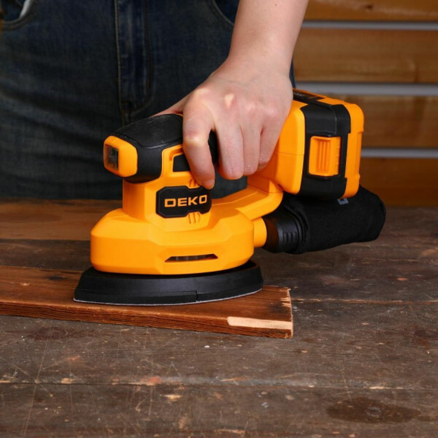Шлифовальная машина дельташлифовальная аккумуляторная DEKO DKCG20 электрическая шлифмашина с регулировкой оборотов для ремонта, строительства 2000 мАч, 20 В, пылесборник в комплекте интересное: