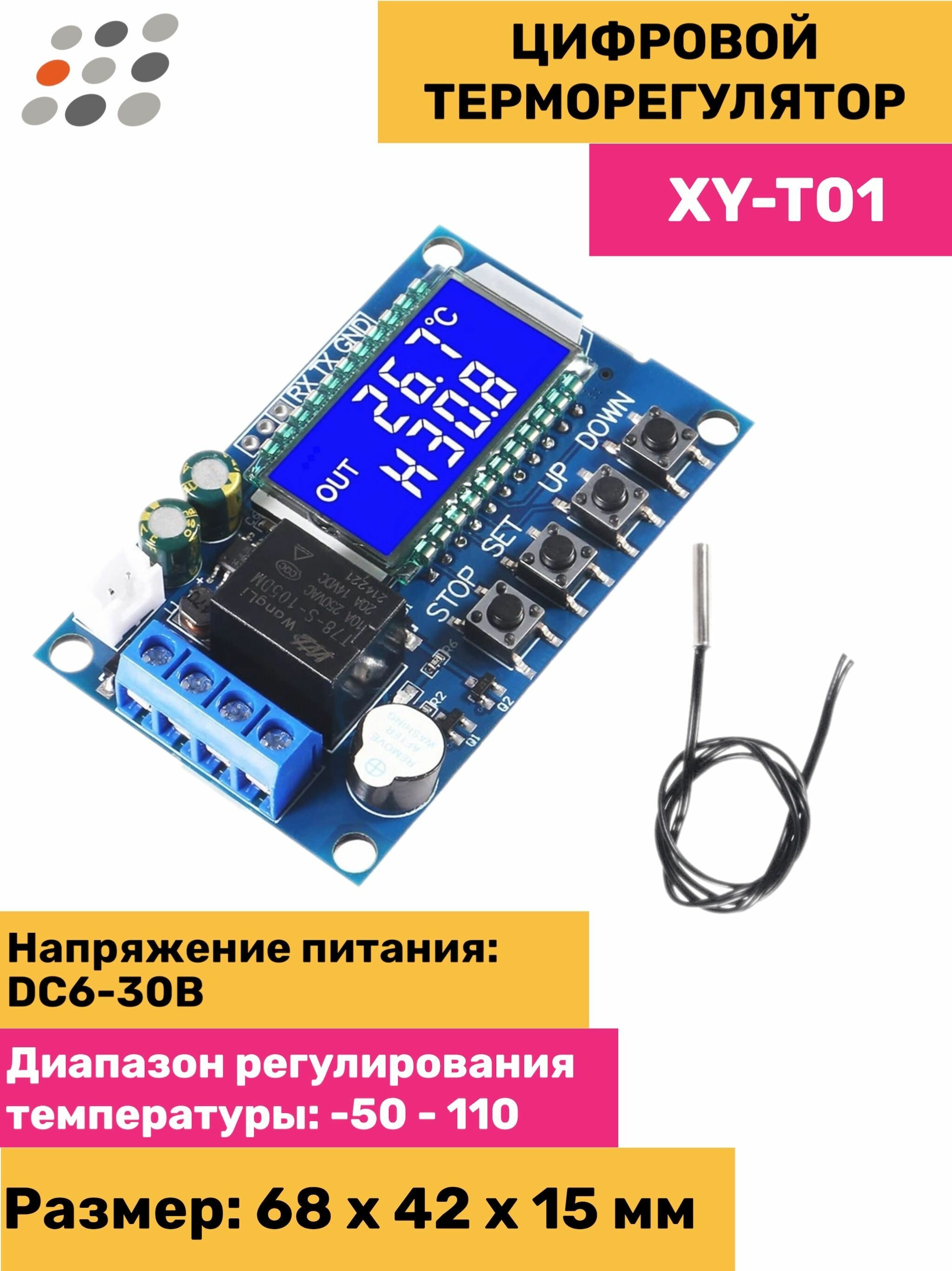 Цифровой терморегулятор XY-T01 (DC 12V) с датчиком NTC интересное: