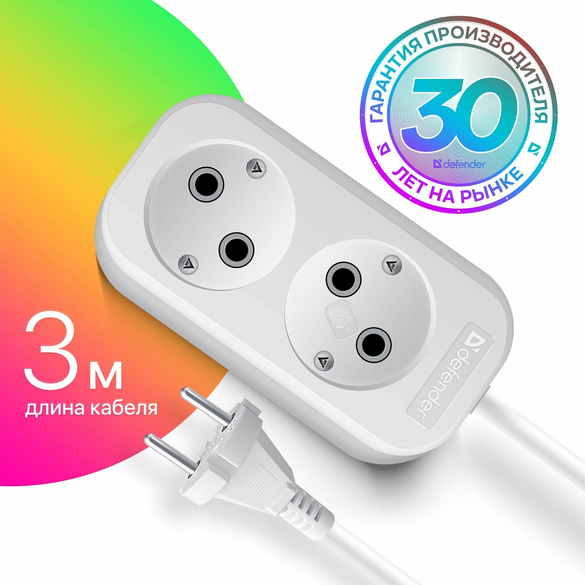 Купить Удлинитель сетевой Defender 2 розетки , 3 м , белый
