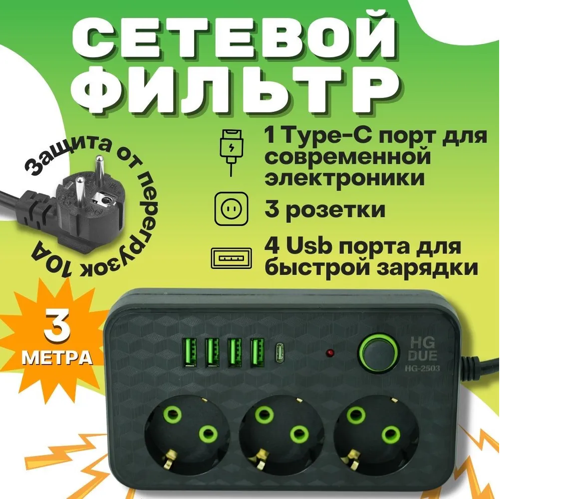 Ниже Вы можете прочитать отзывы на Сетевой фильтр с 3 розетками 4 USB + 1 Type-C Многофункциональный удлинитель с предохранителем Провод 3 метра Выключатель на корпусе, ознакомится с подробными характеристиками, посмотреть интересные обзоры и фотографии на Сетевой фильтр с 3 розетками 4 USB + 1 Type-C Многофункциональный удлинитель с предохранителем Провод 3 метра Выключатель на корпусе.