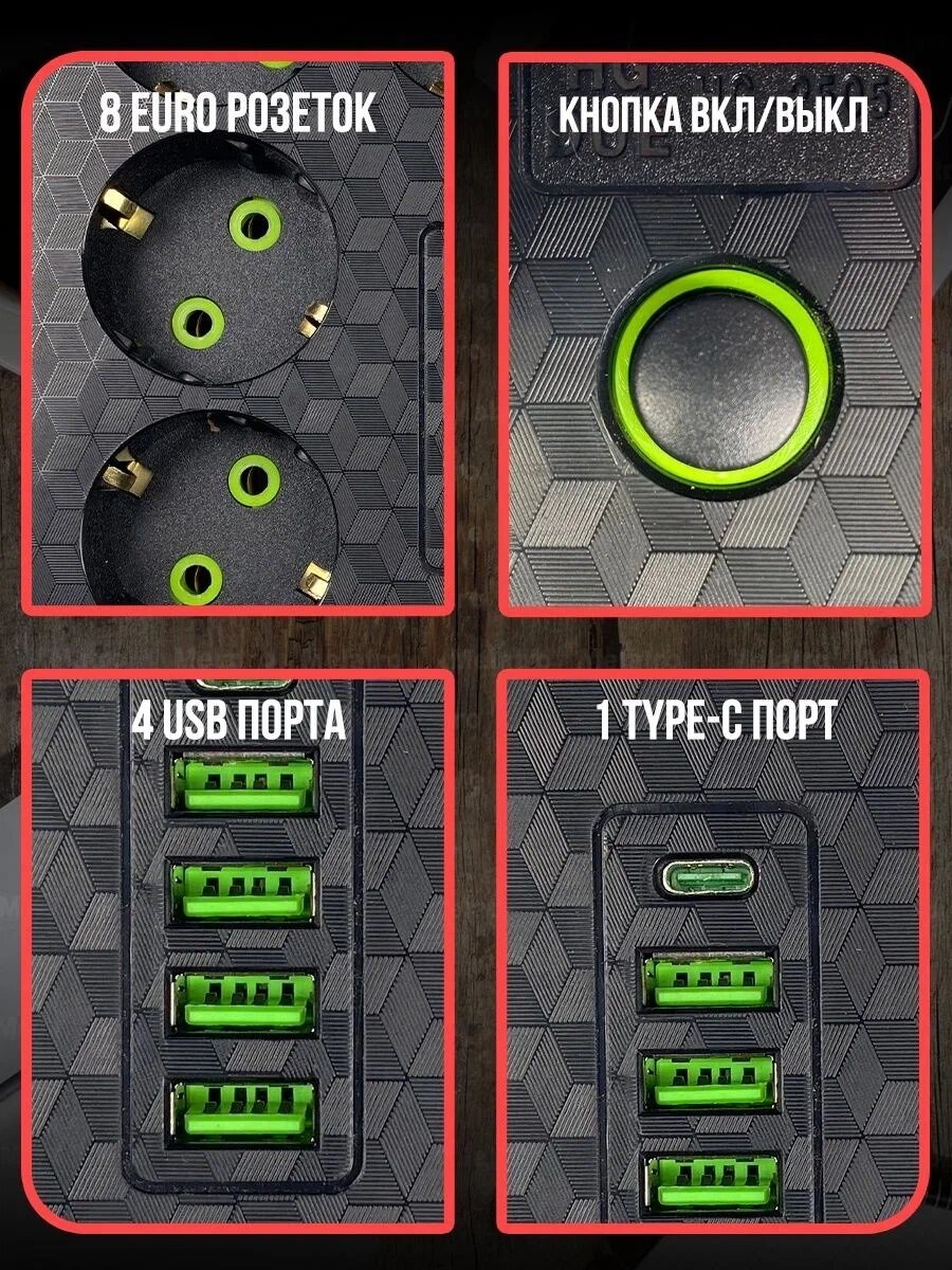 СохранитьСетевой фильтр с 8 розетками 4 USB + 1 Type-C Многофункциональный удлинитель с предохранителем Провод 3 метра Выключатель на корпусе интересное: