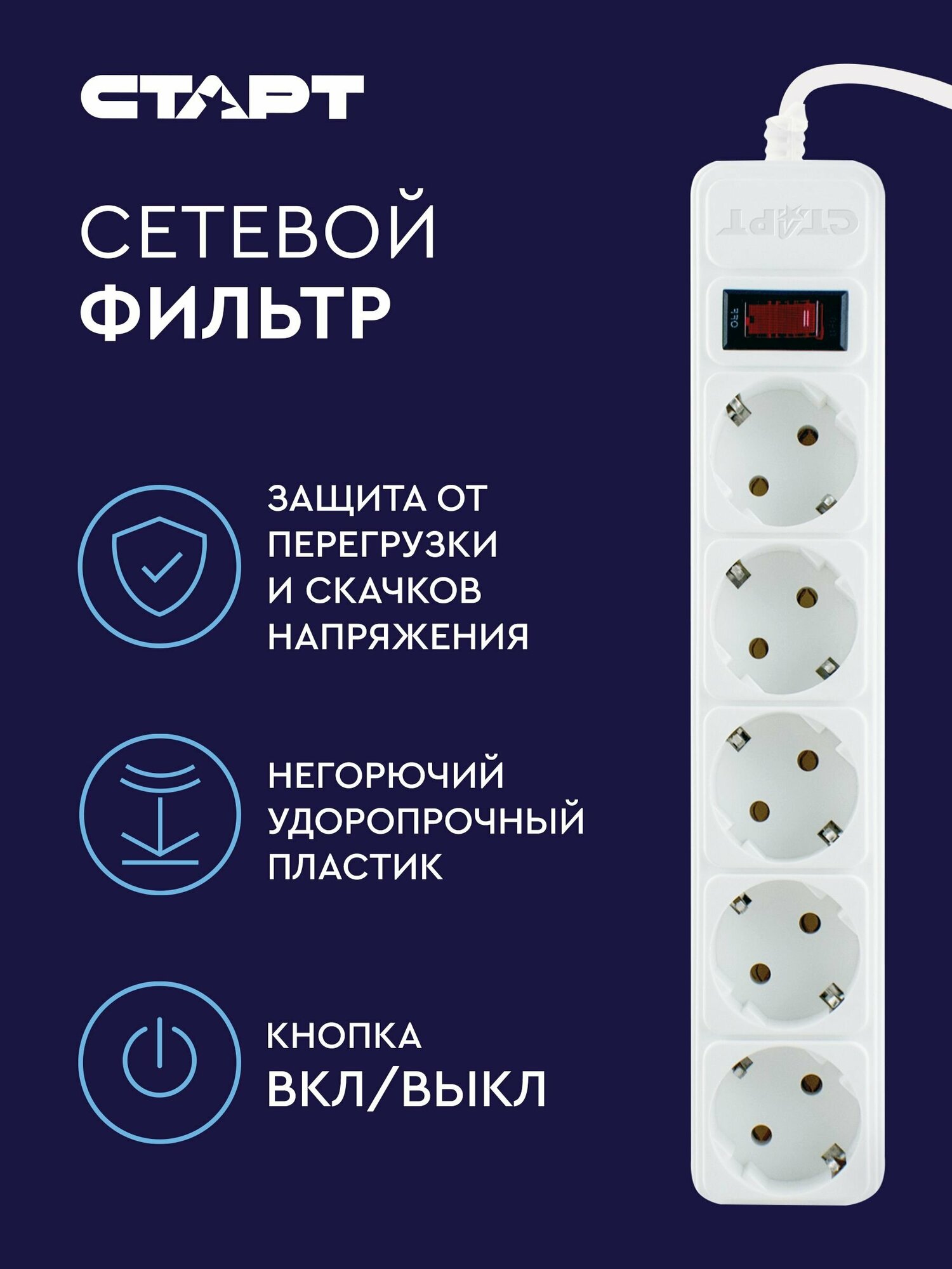 Ниже Вы можете прочитать отзывы на Старт сетевой удлинитель-фильтр SP 5x5 ZVT белый, 5 розеток, 5м, ознакомится с подробными характеристиками, посмотреть интересные обзоры и фотографии на Старт сетевой удлинитель-фильтр SP 5x5 ZVT белый, 5 розеток, 5м.