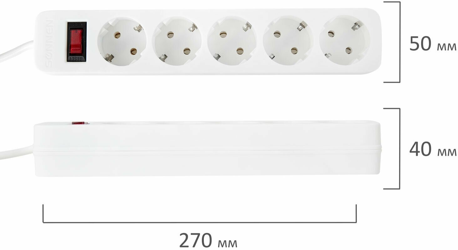 Купить Удлинитель-переноска сетевой фильтр Sonnen Spw-305, 5 розеток с заземлением, выключатель, 10 А, 3 м, белый, 513654