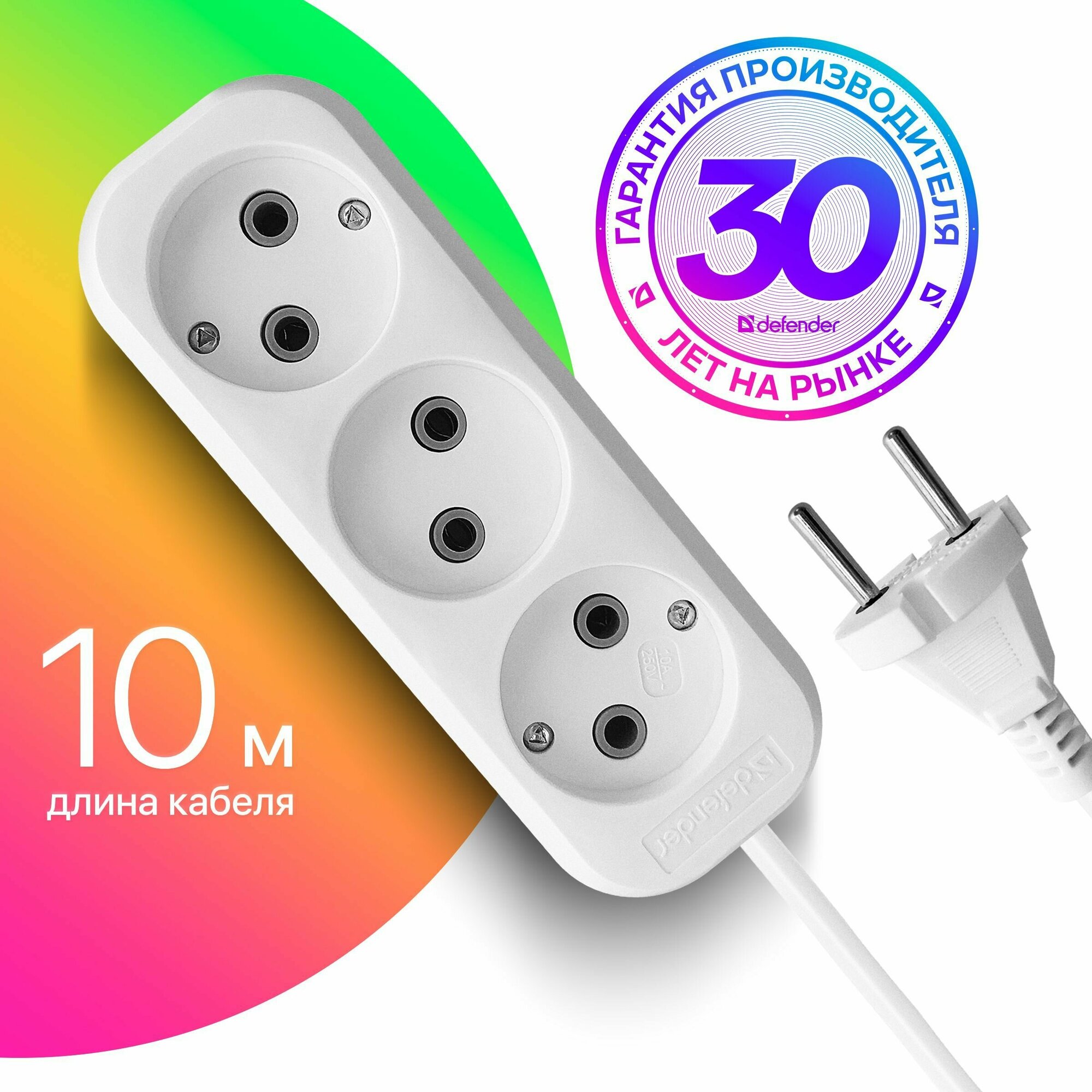 Купить Удлинитель сетевой Defender 3 розетки , 10 м , белый