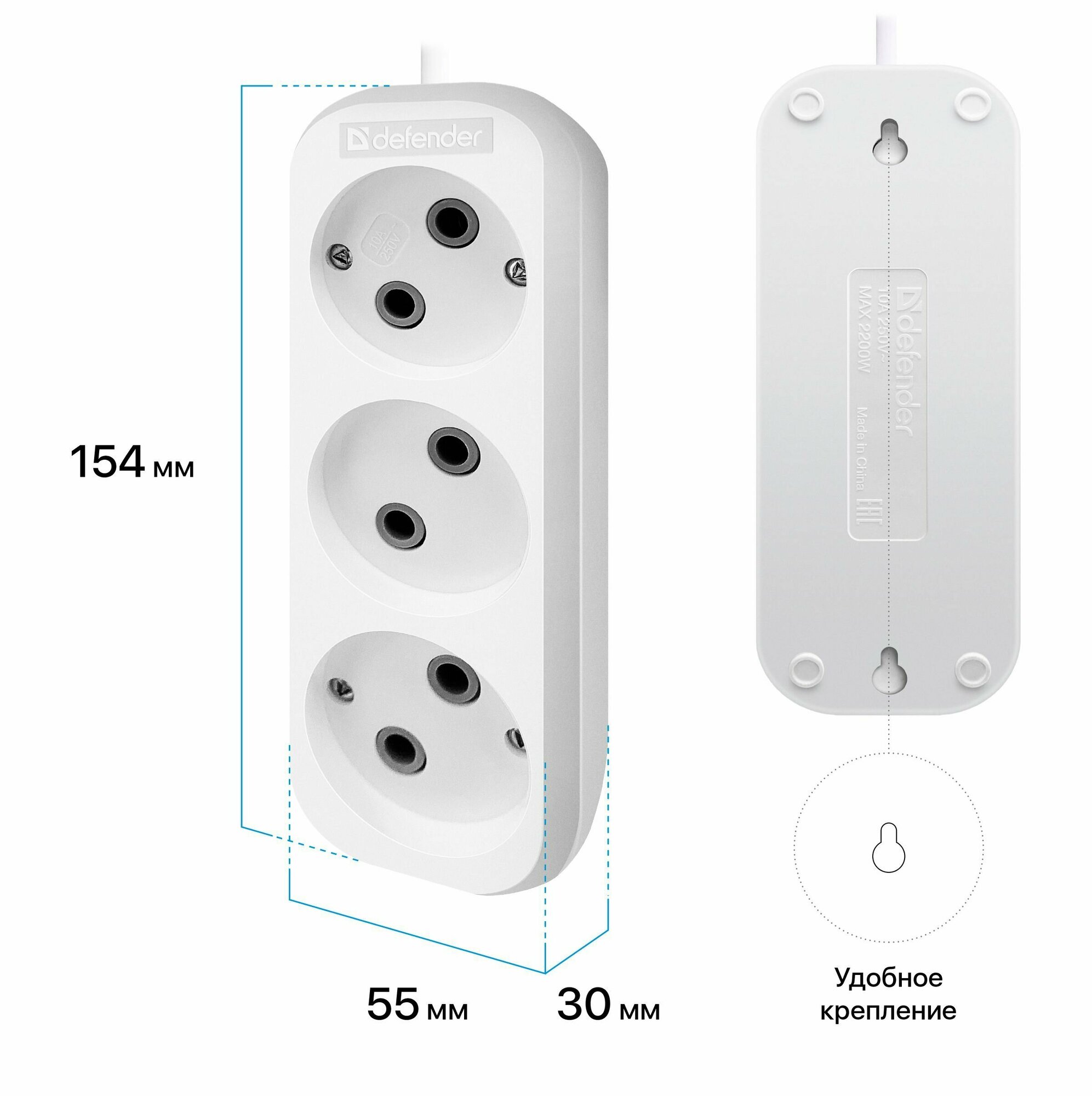 Удлинитель сетевой Defender 3 розетки , 1.5 м, белый