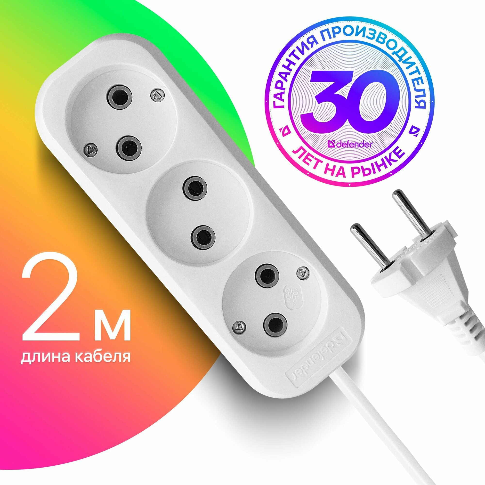 Купить Удлинитель сетевой Defender 3 розетки , 2 м , белый