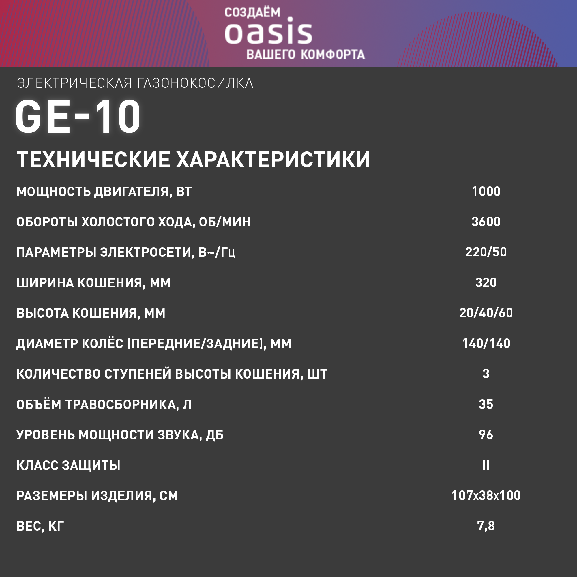 Электрическая газонокосилка Oasis GE-10, 1000 Вт, 32 см, 2022 интересное: