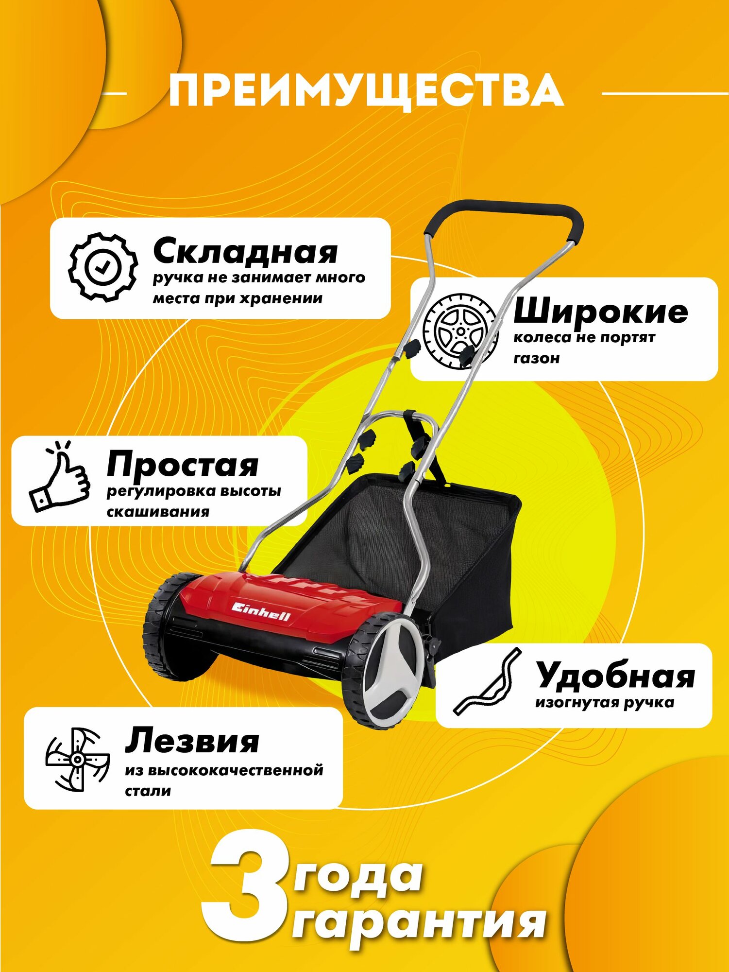 Газонокосилка механическая Einhell GE-HM 38 S-F, ширина 38см интересное: