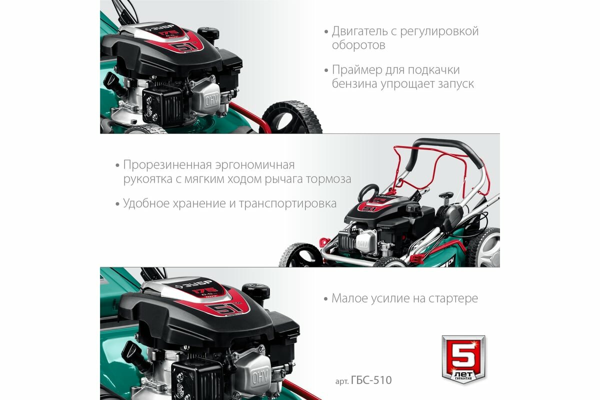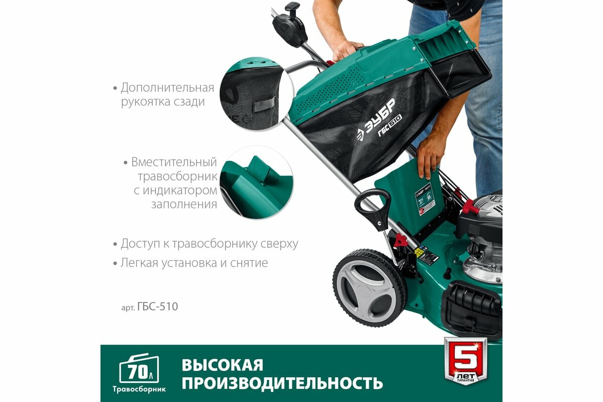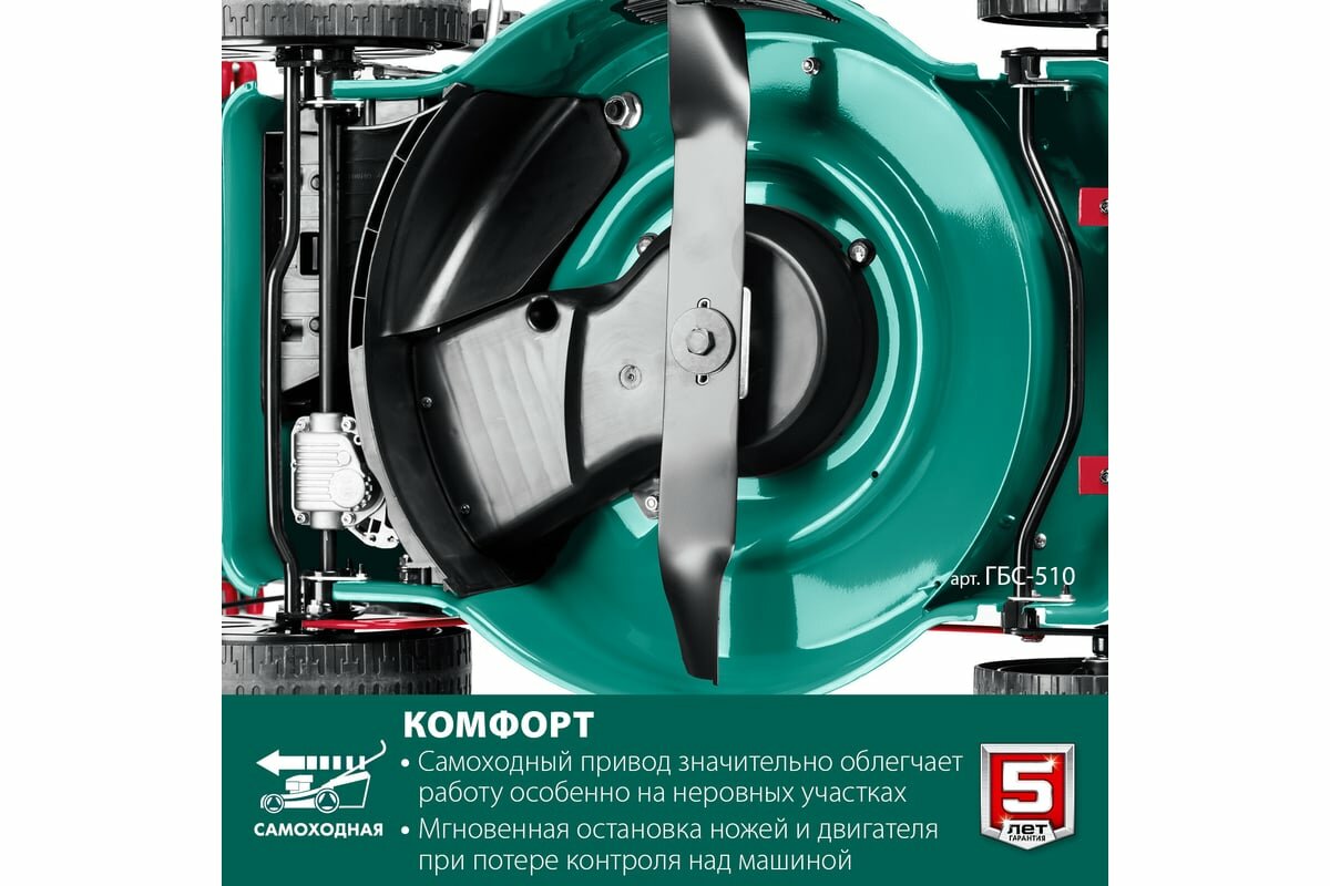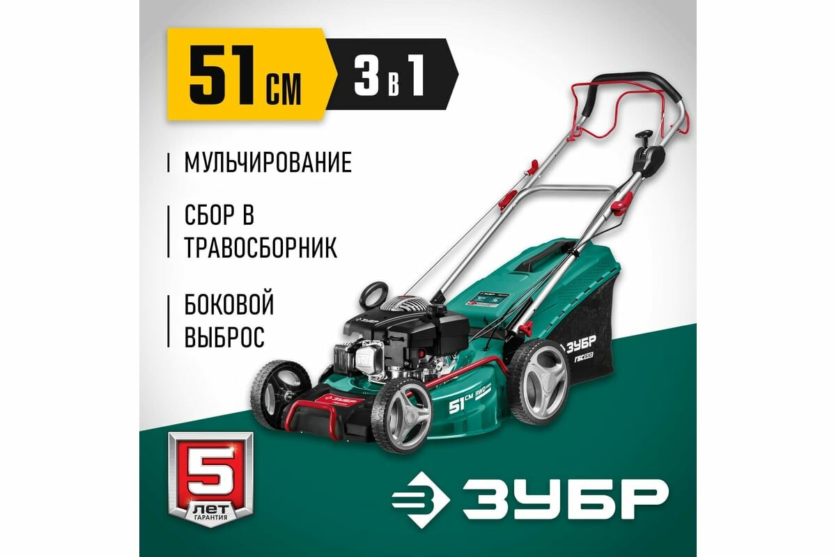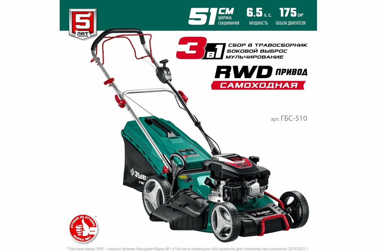 ЗУБР Бензиновая самоходная газонокосилка, 510 мм 6.5 л.с. [ГБС-510] интересное: