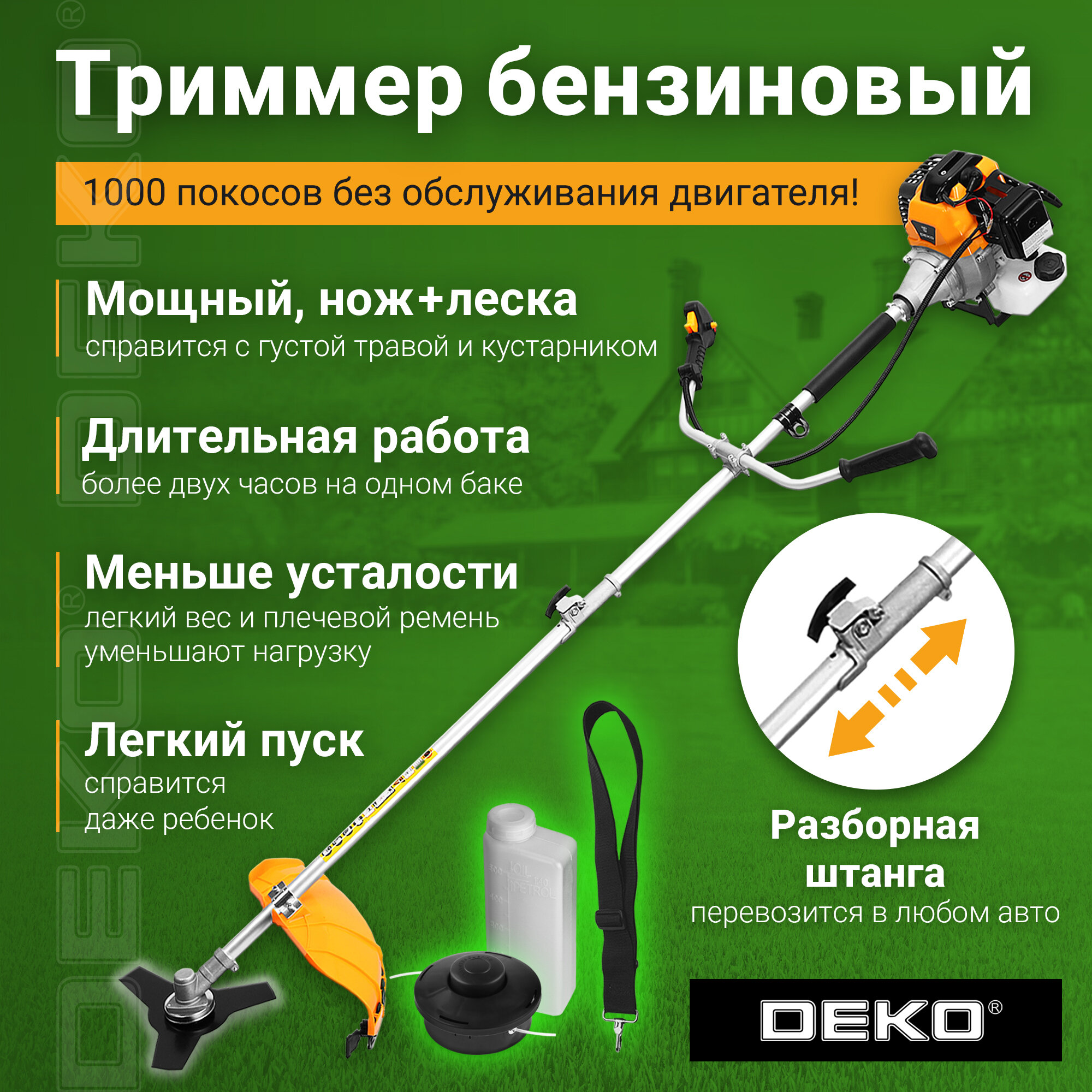 Триммер бензиновый DEKO DKTR52 SET 11, леска/нож интересное: