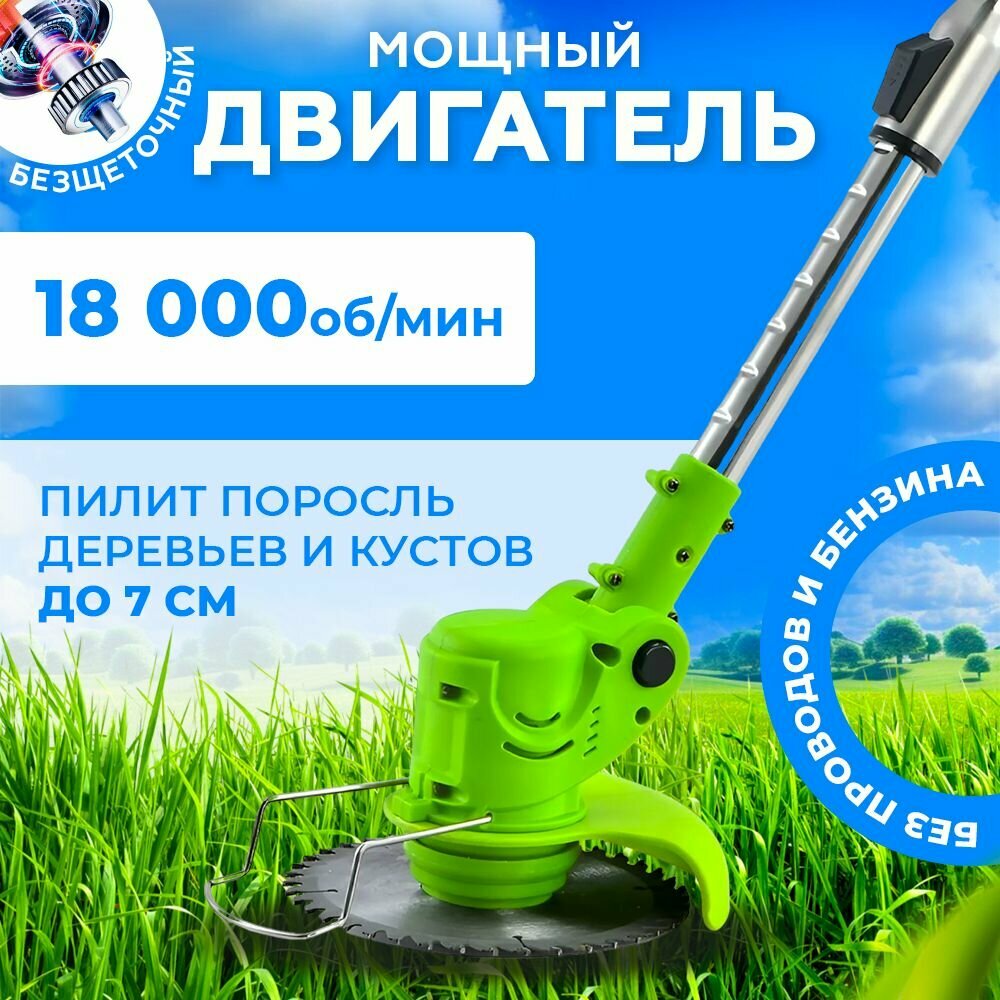 Триммер аккумуляторный (2 аккумулятора Li-ion 2000mAH) кротоф / коса, газонокосилка интересное: