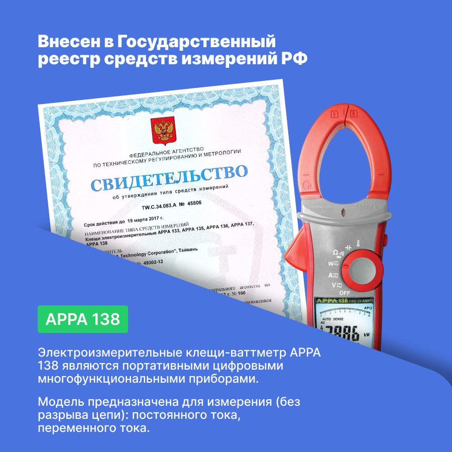 Ниже Вы можете прочитать отзывы на Электроизмерительные клещи APPA 138, ознакомится с подробными характеристиками, посмотреть интересные обзоры и фотографии на Электроизмерительные клещи APPA 138.