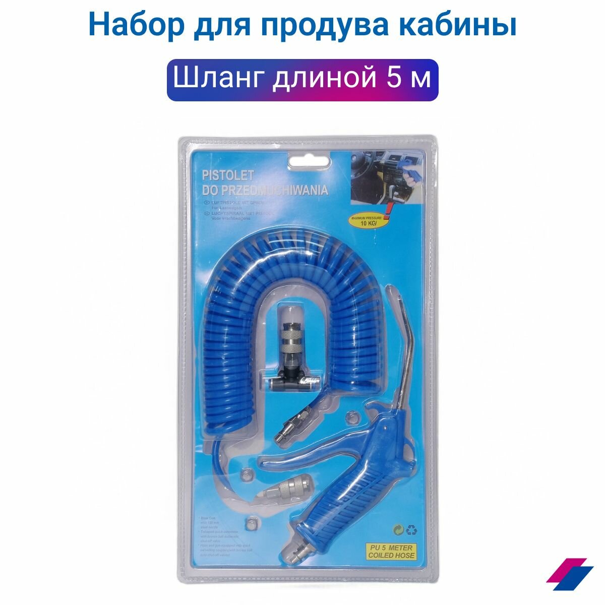 Набор для продува кабины/продувочный пистолет 120мм шланг 5м PU 4х6мм тройник цанга 6мм интересное: