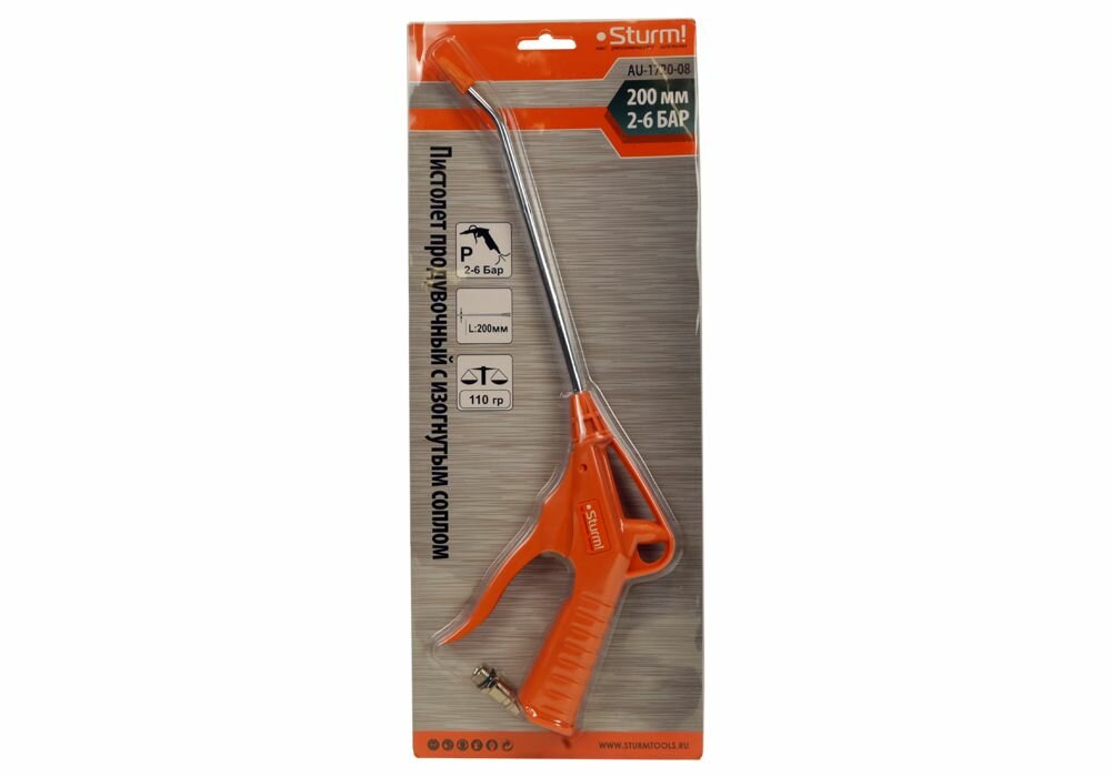 Купить Пистолет продувочный, изогнутое сопло 200 мм, 2-6 бар, d 3, 8мм Sturm! AU-1720-08