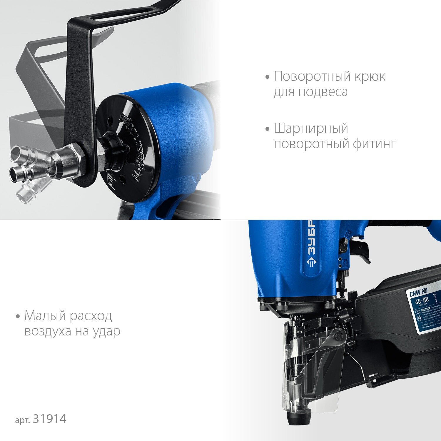 ЗУБР CNW-90, пневматический нейлер для барабанных гвоздей ЗУБР CNW (45-90 мм), Профессионал (31914
