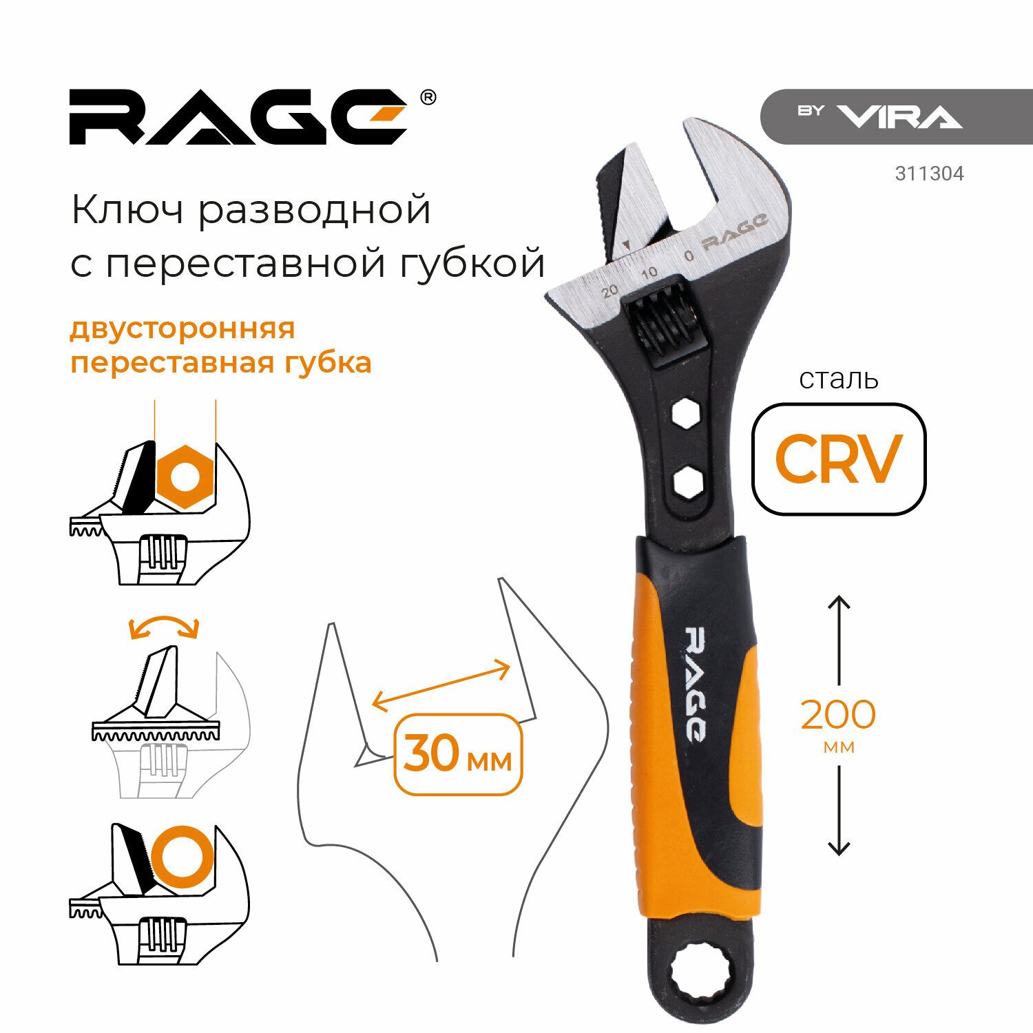 RAGE By VIRA Ключ разводной с переставной губкой 200 мм 311304