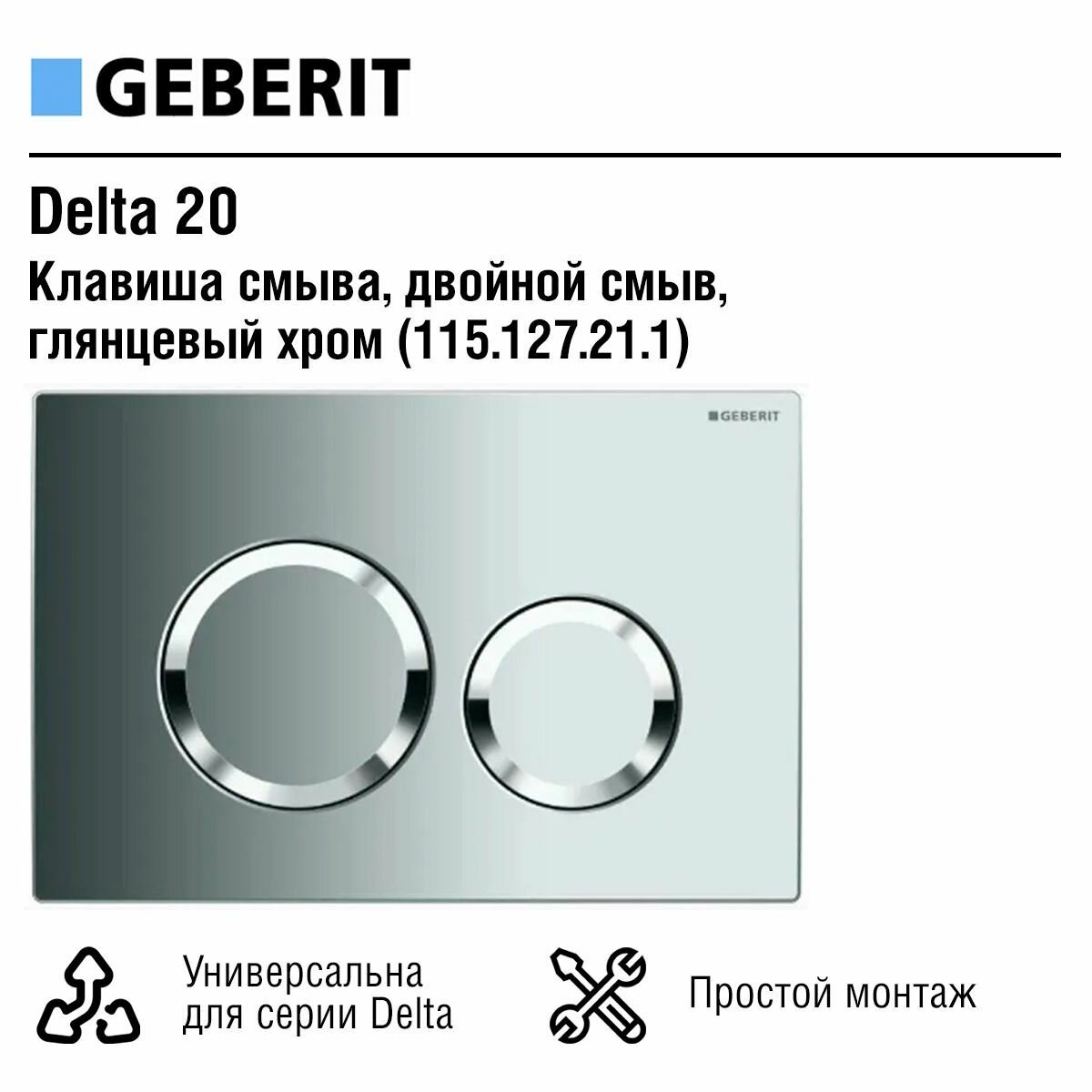 Смывная клавиша Geberit Delta 20, для двойного смыва - Глянцевый хром (115.127.21.1) интересное: