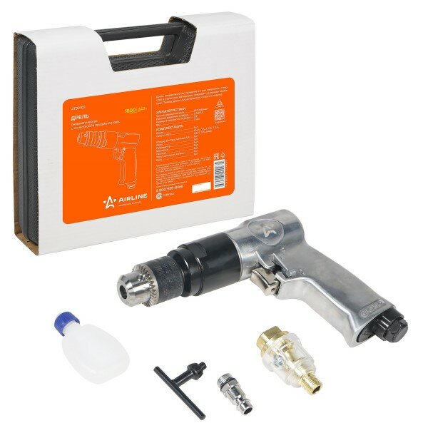 Дрель пневматическая 6,3 Атм. 1800об/мин, с оснасткой (16 пред.) в кейсе интересное: