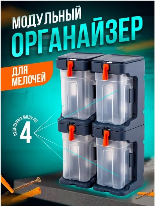 Набор лотков для метизов Blocker Expertподвесные с крепежом малые (серо-свинцовый/оранжевый), 4 шт B интересное: