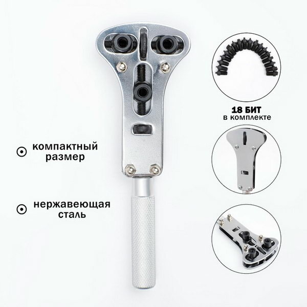 Разводной ключ для открытия винтовых крышек часов, 18 насадок интересное: