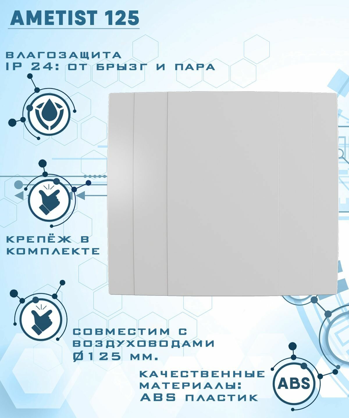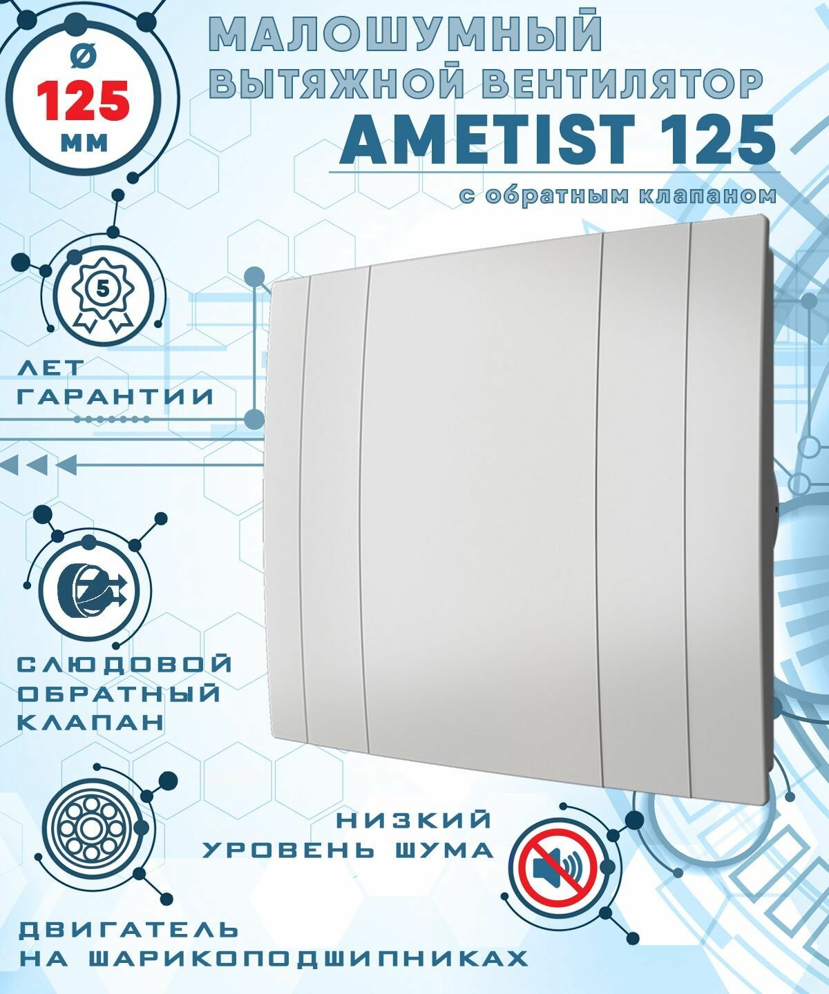 AMETIST 125 вентилятор вытяжной малошумный 29 Дб энергоэффективный 17 Вт на шарикоподшипниках с обратным клапаном диаметр 125 мм ZERNBERG интересное: