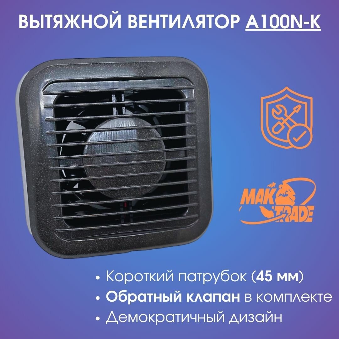 Купить Вентилятор A100N-K, D100мм c обратным клапаном и коротким патрубком, цвет антрацит, Сербия