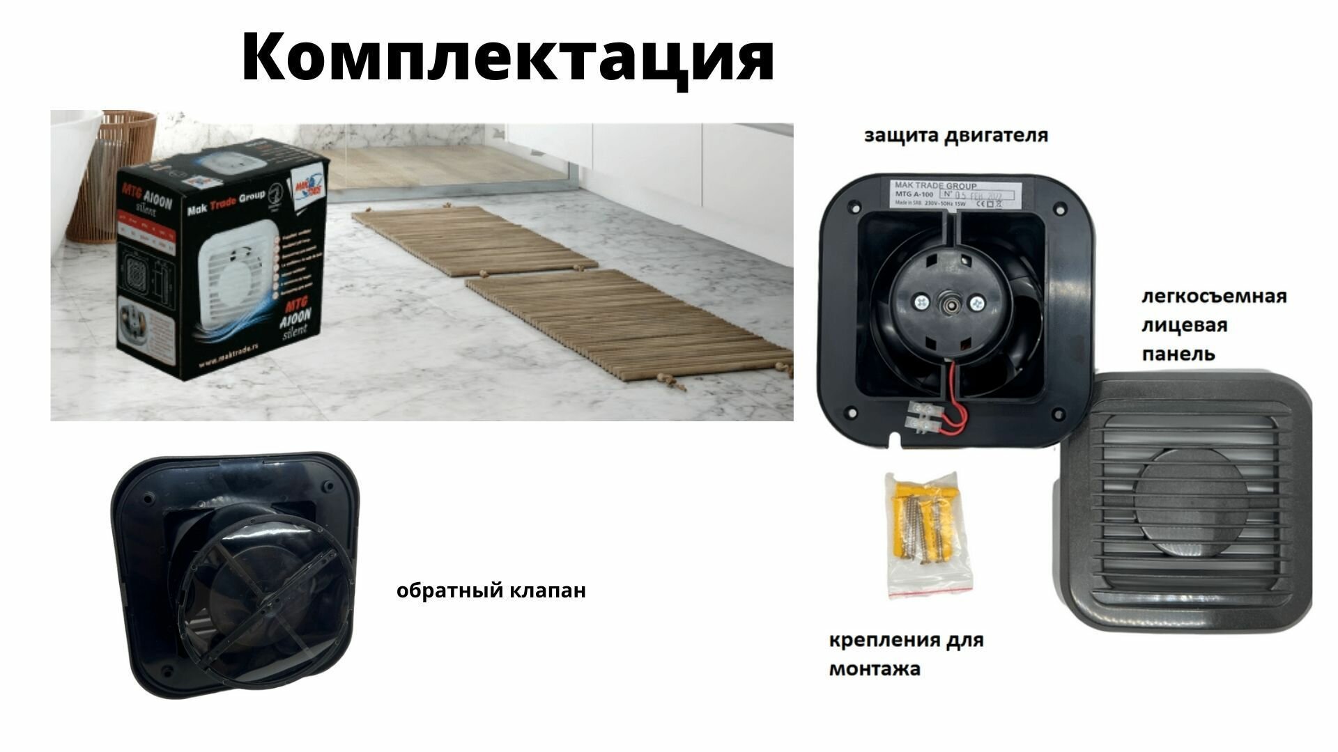 Вентилятор A100N-K, D100мм c обратным клапаном и коротким патрубком, цвет антрацит, Сербия интересное: