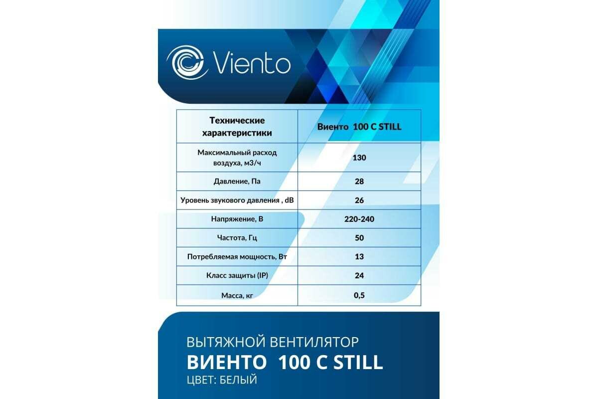 Вентилятор осевой, вытяжной, малошумный, виенто 100С STILL (130 м3) интересное:
