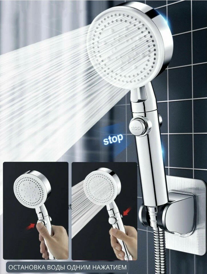 Лейка для душа/душевая лейка С кнопкой (для остановки воды) и пятью режимами перключения воды интересное: