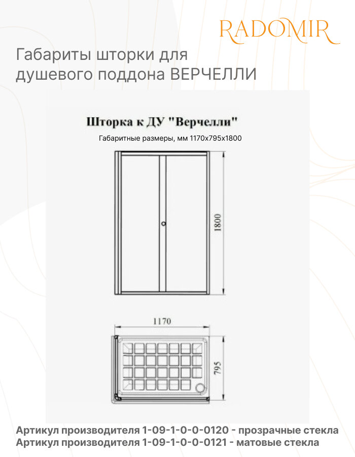 Высокий поддон Radomir к душевому углу Верчелли 119х81 правый интересное: