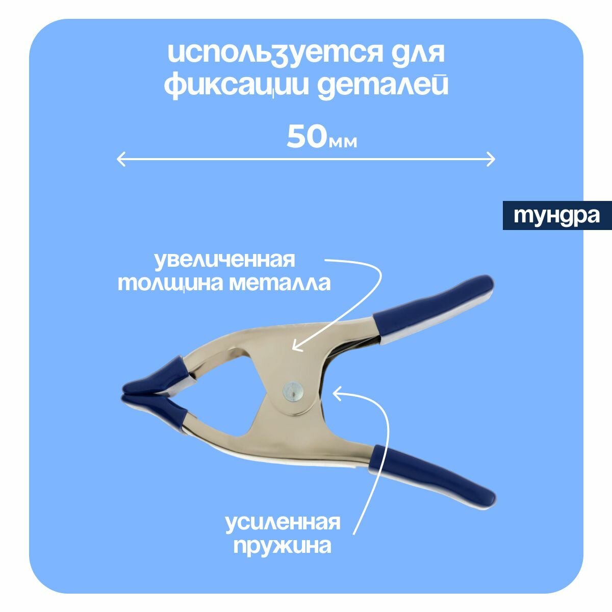 Купить Струбцина усиленная клещеобразная тундра, 2", металлическая, зажим до 20 мм, 50 мм