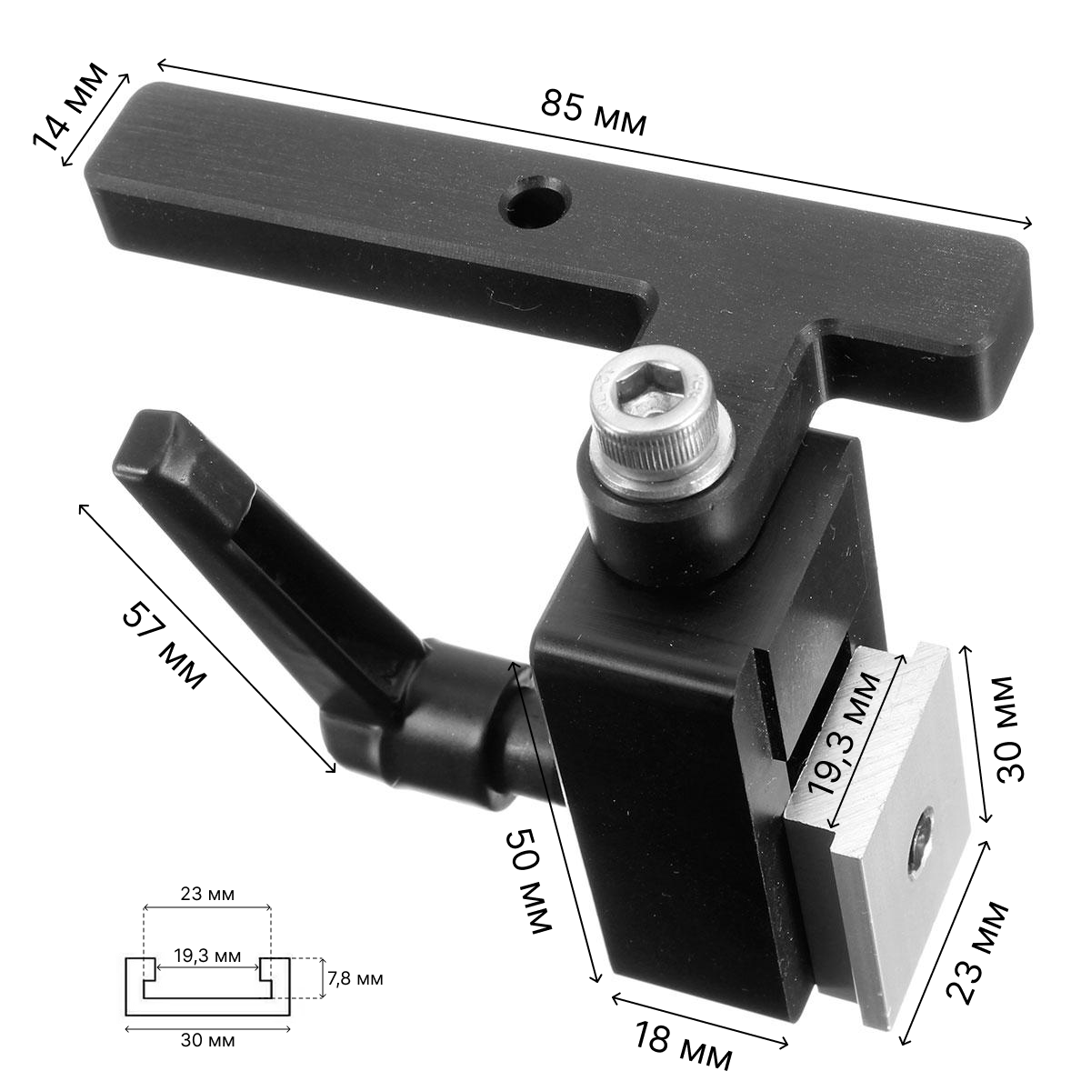 Прижим (струбцина) для шины - направляющей с Т- образным пазом 19 мм Kige , черный интересное:
