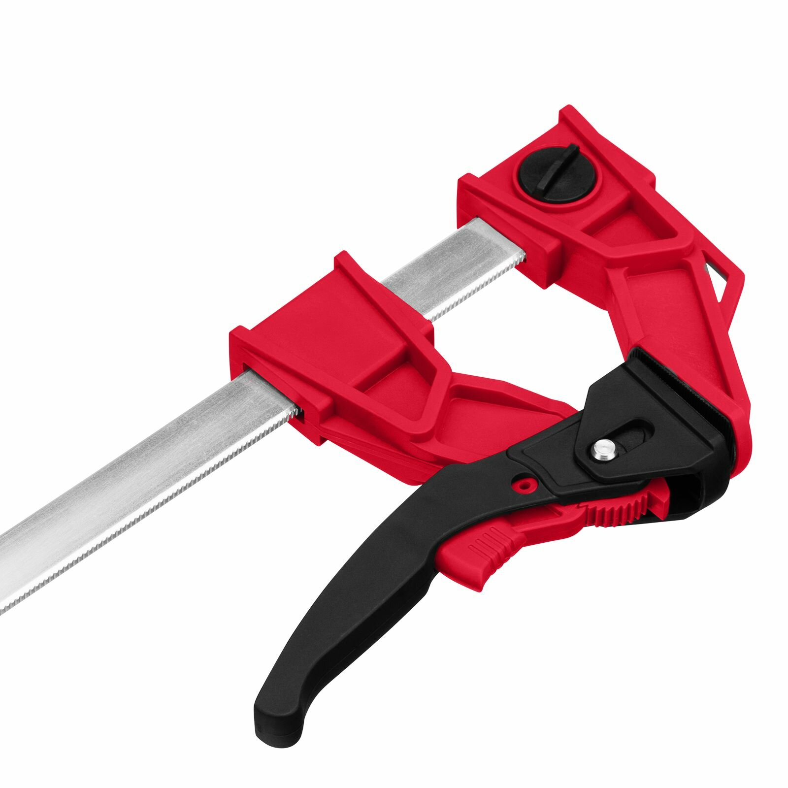 Купить Струбцина реечная быстрозажимная, усиленная, пластиковый корпус рычажно-храповой механизм, 800 х 100 х 951 мм, штанга 5 х 22 мм Matrix [20730]